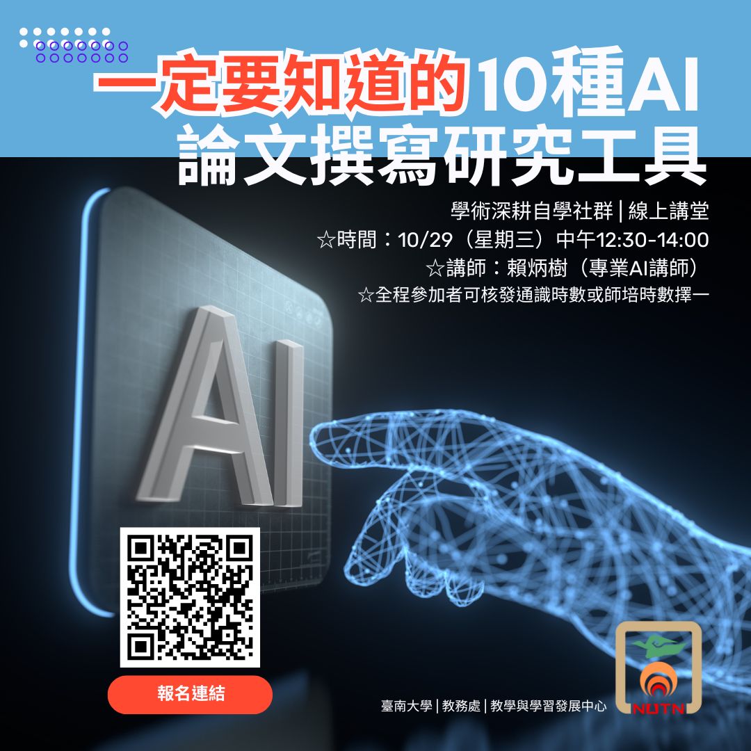 🚀 立即點擊連結報名,掌握 AI 時代的學術優勢! 👉 [報名連結] (https://campus.nutn.edu.tw/ActReg/ActInfo/11107/11409280205)